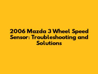 2006 Mazda 3: ABS Wheel Speed Sensor Issues & Solutions