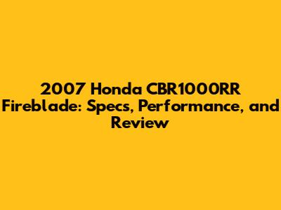 2007 Honda CBR1000RR Fireblade: Specs, Performance, And Review
