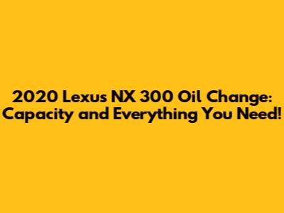 So there you have it, guys! Everything you need to know about the 2020 Lexus NX 300 oil capacity and how to keep your engine running smoothly. Remember that regular oil changes with the correct type and amount of oil are key to maximizing your car’s performance and lifespan. By following these tips and guidelines, you can ensure that your Lexus NX 300 stays in tip-top shape for years to come.