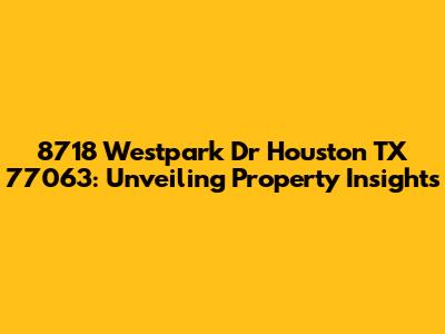 Hey there, real estate enthusiasts! Let's dive deep into the details of 8718 Westpark Dr Houston TX 77063. This isn't just about a physical address; it's about uncovering the potential, the history, and the future of a specific piece of property. In this article, we'll explore everything you need to know about this location, providing insights that can help you, whether you're a potential buyer, a curious neighbor, or just someone who loves to stay informed about real estate trends. We'll be looking at everything from property values and recent sales to the neighborhood's vibe and nearby amenities. Ready to get started?