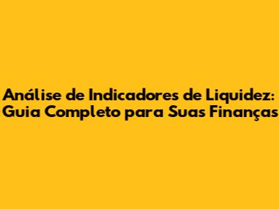 Análise De Indicadores De Liquidez: Guia Completo Para Suas Finanças