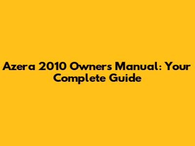 Azera 2010 Owner's Manual: Your Complete Guide