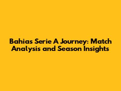 Bahia's Serie A Journey: Match Analysis And Season Insights