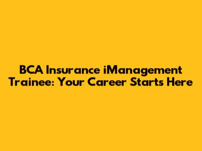 BCA Insurance IManagement Trainee: Your Career Starts Here