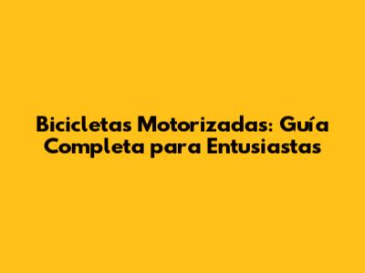 Bicicletas Motorizadas: Guía Completa Para Entusiastas