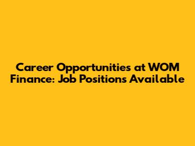 Career Opportunities At WOM Finance: Job Positions Available