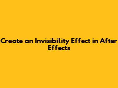 Create An Invisibility Effect In After Effects