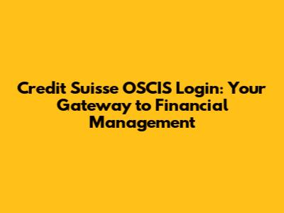 Credit Suisse OSCIS Login: Your Gateway to Financial Management