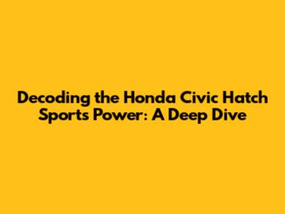 Decoding The Honda Civic Hatch Sport's Power: A Deep Dive