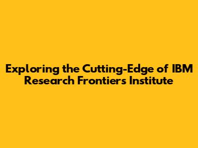 Exploring The Cutting-Edge Of IBM Research Frontiers Institute