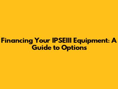 Financing Your IPSEIII Equipment: A Guide To Options