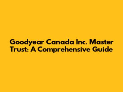Hey everyone, let's dive into the Goodyear Canada Inc. Master Trust, shall we? This isn't exactly the sexiest topic, I know, but trust me, understanding it can be super important, especially if you're involved with Goodyear Canada or are just curious about how large organizations manage their finances and employee benefits. We're going to break down what the Master Trust is, why it exists, and what it all means in plain English. No jargon, I promise!