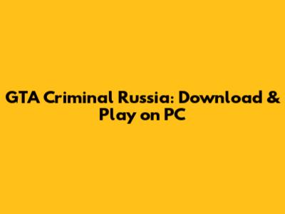 GTA Criminal Russia: Download & Play On PC