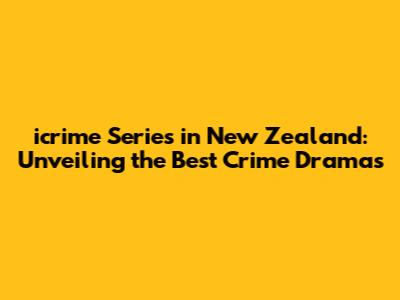 Icrime Series In New Zealand: Unveiling The Best Crime Dramas