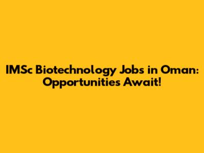 IMSc Biotech Jobs In Oman: Opportunities Await!