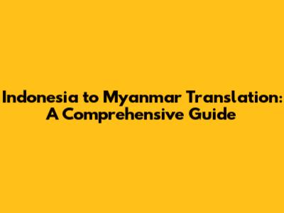 Indonesia To Myanmar Translation: A Comprehensive Guide