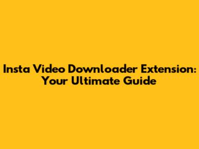 Insta Video Downloader Extension: Your Ultimate Guide