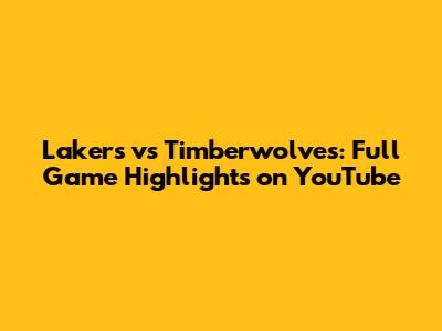 Lakers Vs Timberwolves: Full Game Highlights On YouTube