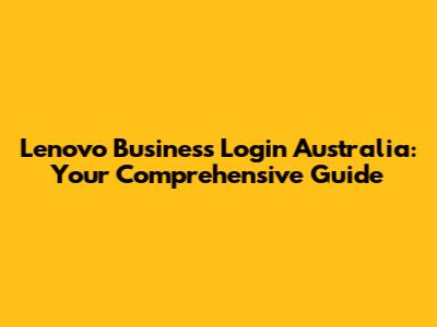 Lenovo Business Login In Australia: Your Complete Guide