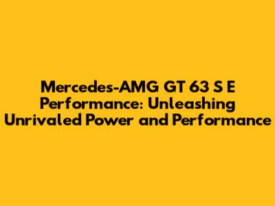 The Mercedes-AMG GT 63 S E Performance represents the pinnacle of automotive engineering, a fusion of raw power, cutting-edge technology, and meticulous craftsmanship. It's a car that demands attention, a statement of intent, and a testament to the relentless pursuit of automotive perfection. From its handcrafted engine to its sophisticated hybrid system, every aspect of the car is designed to deliver an unparalleled driving experience. If you're looking for a vehicle that combines breathtaking performance with innovative technology, the GT 63 S E Performance is the ultimate choice.