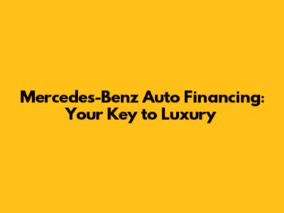 Mercedes-Benz Auto Financing: Your Key To Luxury