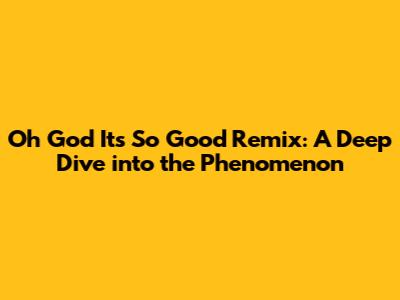 Oh God It's So Good Remix: A Deep Dive