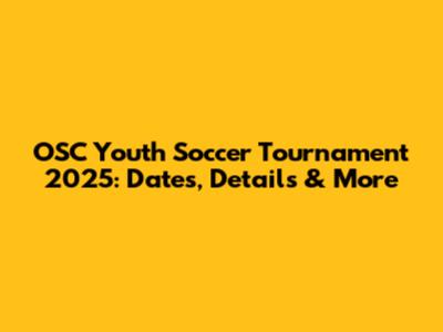 OSC Youth Soccer Tournament 2025: Dates, Details & More