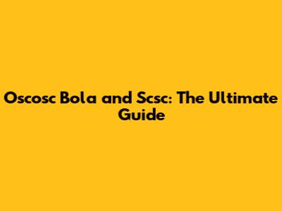 Oscosc Bola And Scsc: The Ultimate Guide