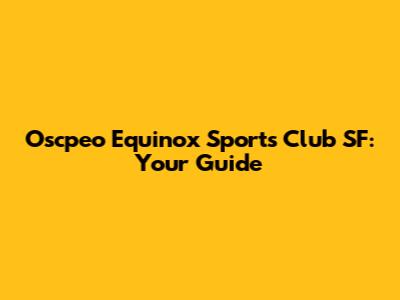 Oscpeo Equinox Sports Club SF: Your Guide