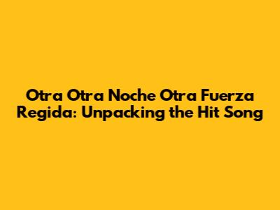 Hey guys! Ever find yourself humming a tune and wondering what it's all about? Today, we're diving deep into "Otra Otra Noche" by Fuerza Regida. This song has been making waves, and we're here to break down its meaning, its impact, and why it resonates with so many people. Get ready to explore the world of Fuerza Regida and uncover the story behind this hit!