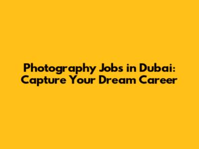 Photography Jobs Dubai: Find Vacancies & Opportunities