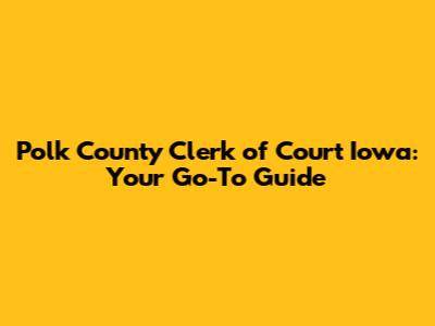 Hey everyone! Are you looking for information about the Polk County Clerk of Court in Iowa? You've landed in the right spot. This guide provides you with everything you need to know, from understanding the clerk's role to accessing their services and resources. Whether you're dealing with court records, payments, or legal documents, navigating the system can seem daunting. Let's break it down together, making sure you're well-equipped to handle your interactions with the Polk County Clerk of Court with confidence and ease. We'll cover the essential aspects, ensuring you have a smooth experience. Understanding the functions of the Polk County Clerk of Court is crucial for anyone involved in legal proceedings within the county. The clerk serves as the administrative arm of the court, responsible for maintaining records, processing filings, and managing court operations. This includes everything from criminal cases and civil disputes to family law matters and probate proceedings. Knowing where to find the right information and how to navigate the clerk's office can save you time and reduce stress. Let’s dive in and get you acquainted with all the important details. Stick around, and you'll become a pro at navigating the Polk County Clerk of Court!