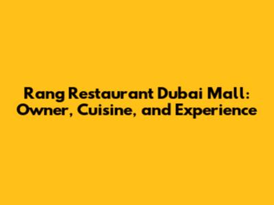 Rang Restaurant Dubai Mall: Owner, Cuisine, And Experience