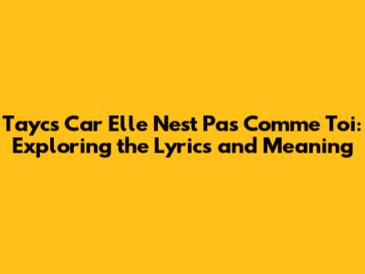 So, what's this song all about? At its core, "Car Elle N'est Pas Comme Toi" is a celebration of a woman who stands out from the crowd. Tayc sings about a girl who is unlike anyone else, emphasizing her unique qualities and the deep admiration he has for her. The lyrics paint a picture of individuality and self-assuredness, which is something a lot of people can connect with. The song's success lies in its ability to capture a universal feeling: the joy of finding someone truly special. The chorus is incredibly catchy, and it makes you want to sing along. The lyrics are heartfelt, and they really speak to the experience of falling for someone who's different and special. The song's relatability is a big part of its charm. Who hasn't felt that spark of connection with someone who just gets you? Also, the song's musical arrangement adds to its appeal. The blend of R&B and Afrobeats creates a vibrant and infectious rhythm, which makes you want to dance. This song has an upbeat tempo, perfect for any occasion. Tayc's vocal performance brings the lyrics to life. His voice is smooth and expressive, which conveys the emotion and admiration. This really helps the audience connect with the song. He puts his heart into every note, which makes you really feel what he's singing. The song's ability to tell a story is key to its success. It's a snapshot of a moment in time, where Tayc is captivated by someone who is different from the others. The lyrics are also carefully crafted, creating imagery and feelings. This allows listeners to connect on an emotional level.