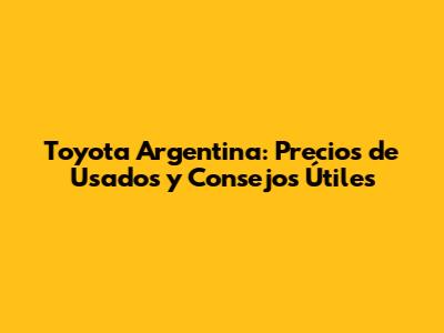 Toyota Argentina: Precios De Usados Y Consejos Útiles