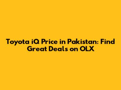 Hey guys! Are you in the market for a Toyota iQ in Pakistan? Looking for the best deals? Well, you've come to the right place! In this article, we'll dive deep into the prices of Toyota iQ models available on OLX, giving you the inside scoop on how to snag the best deal possible. We'll cover everything from factors affecting the price to tips for negotiating and making a smart purchase. So buckle up, and let's get started!