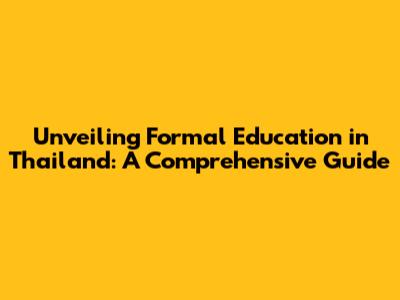 Unveiling Formal Education In Thailand: A Comprehensive Guide
