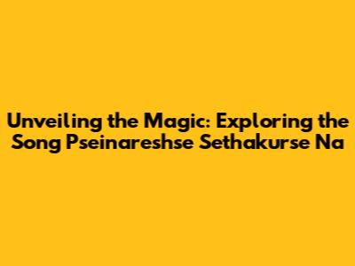 Unveiling The Magic: Exploring The Song 'Pseinareshse Sethakurse Na'